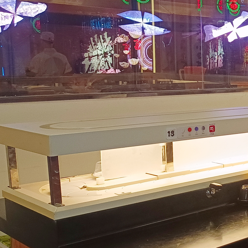 The delivery system of revolving sushi equipment has developed from the first generation to today, going through more than 20 years, from the original single line delivery mode to today's variable track delivery, step by step following market demand. Today, let me take you to understand how powerful a variable track food delivery truck is.